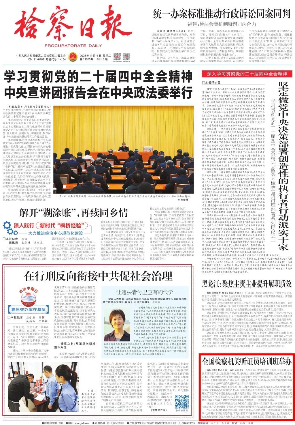 头版刊发《全国检察机关听证员培训班举办》。