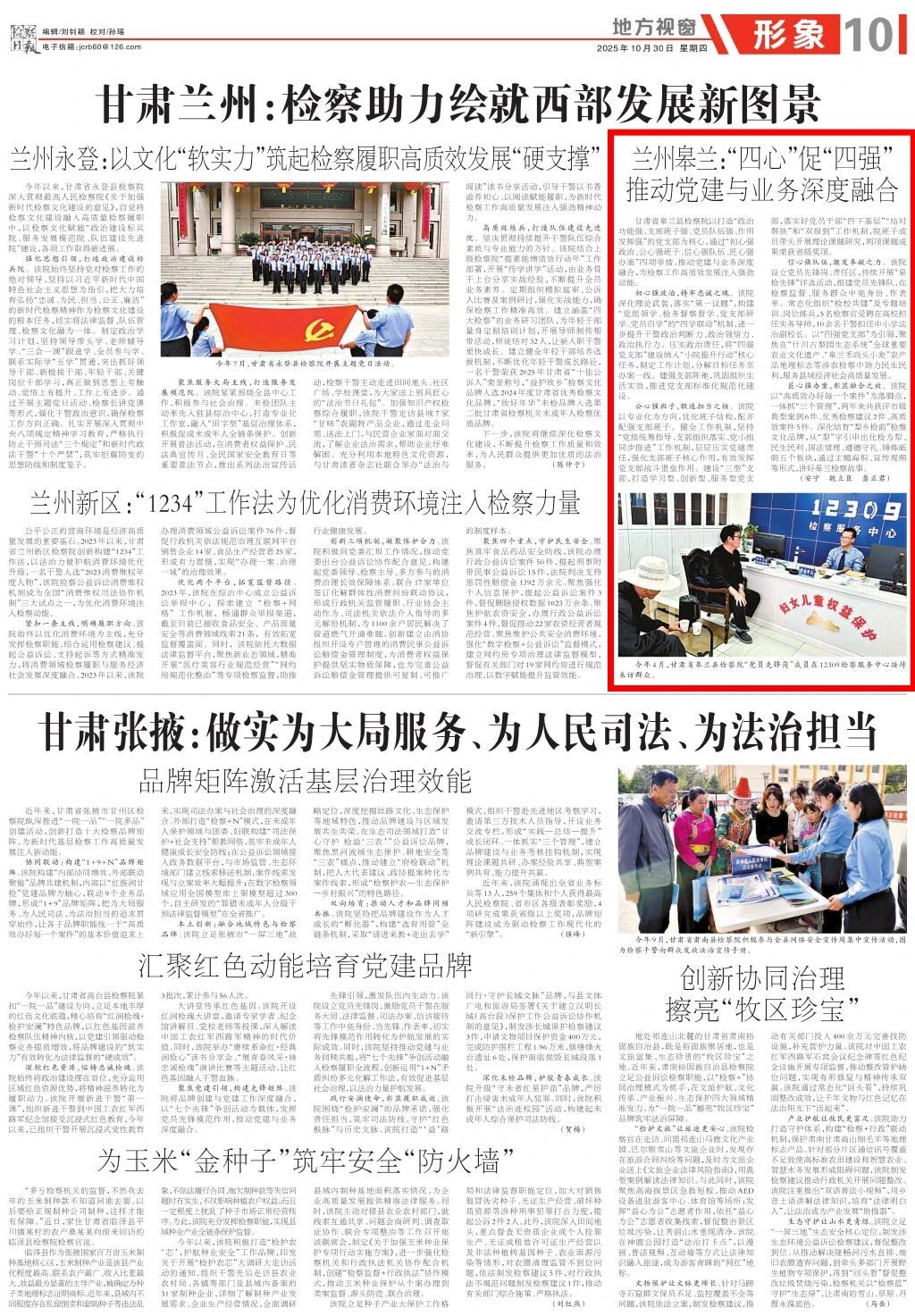 地方视窗《甘肃兰州:检察助力绘就西部发展新图景》专版刊发《兰州皋兰:“四心”促“四强”推动党建与业务深度融合》。