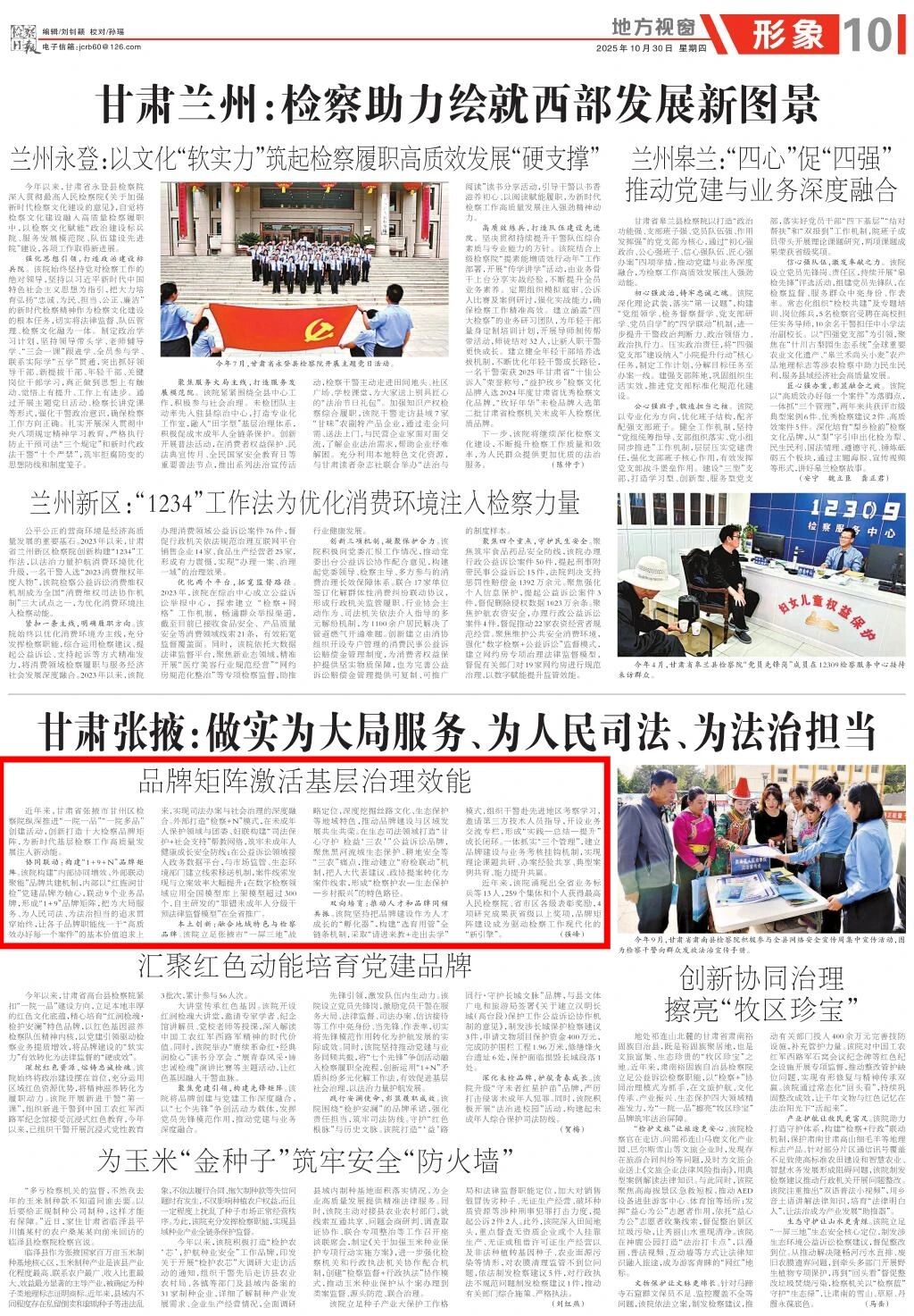 地方视窗《甘肃张掖:做实为大局服务、为人民司法、为法治担当》专版刊发《品牌矩阵激活基层治理效能》。