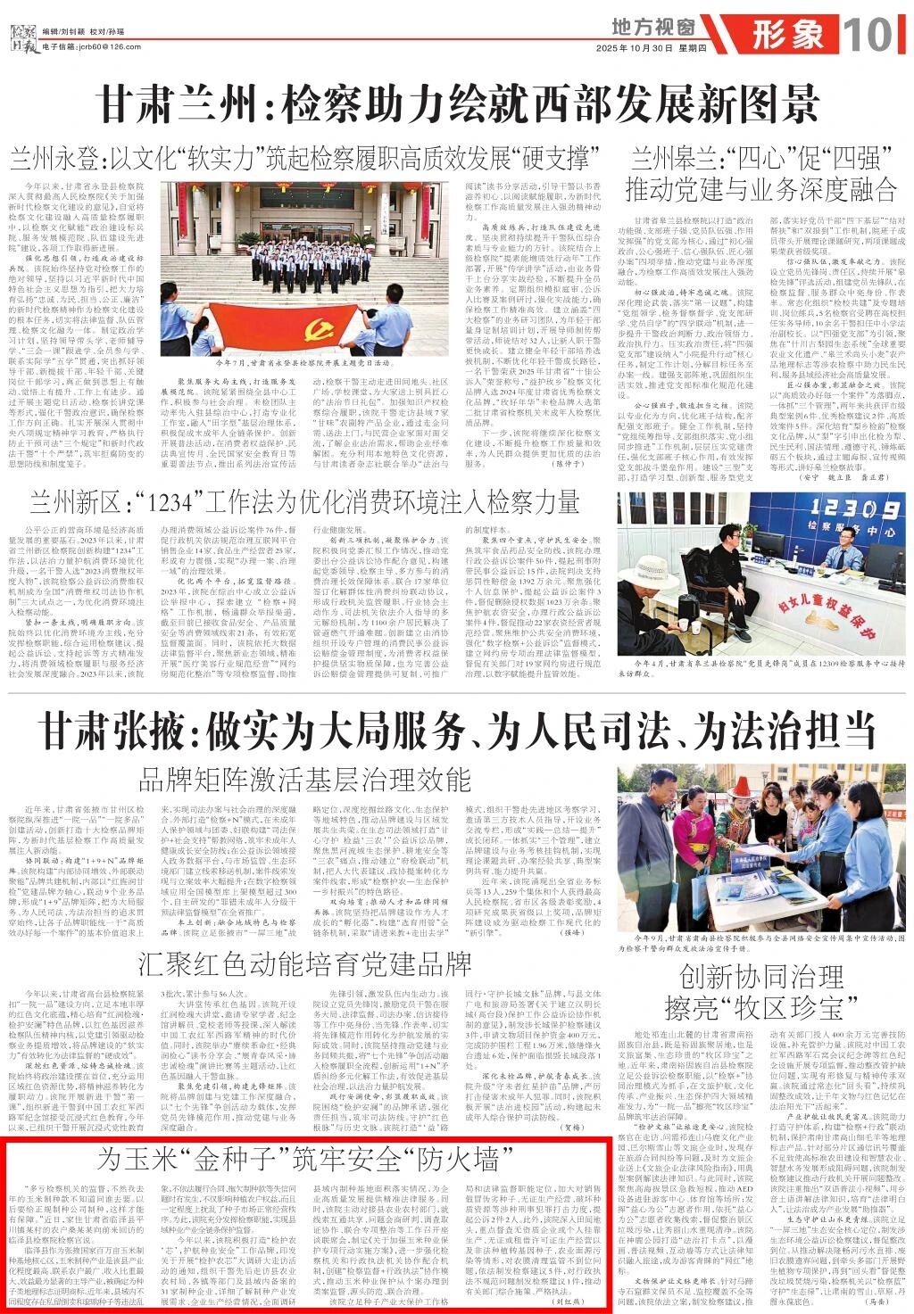地方视窗《甘肃张掖:做实为大局服务、为人民司法、为法治担当》专版刊发《为玉米“金种子”筑牢安全“防火墙”》。