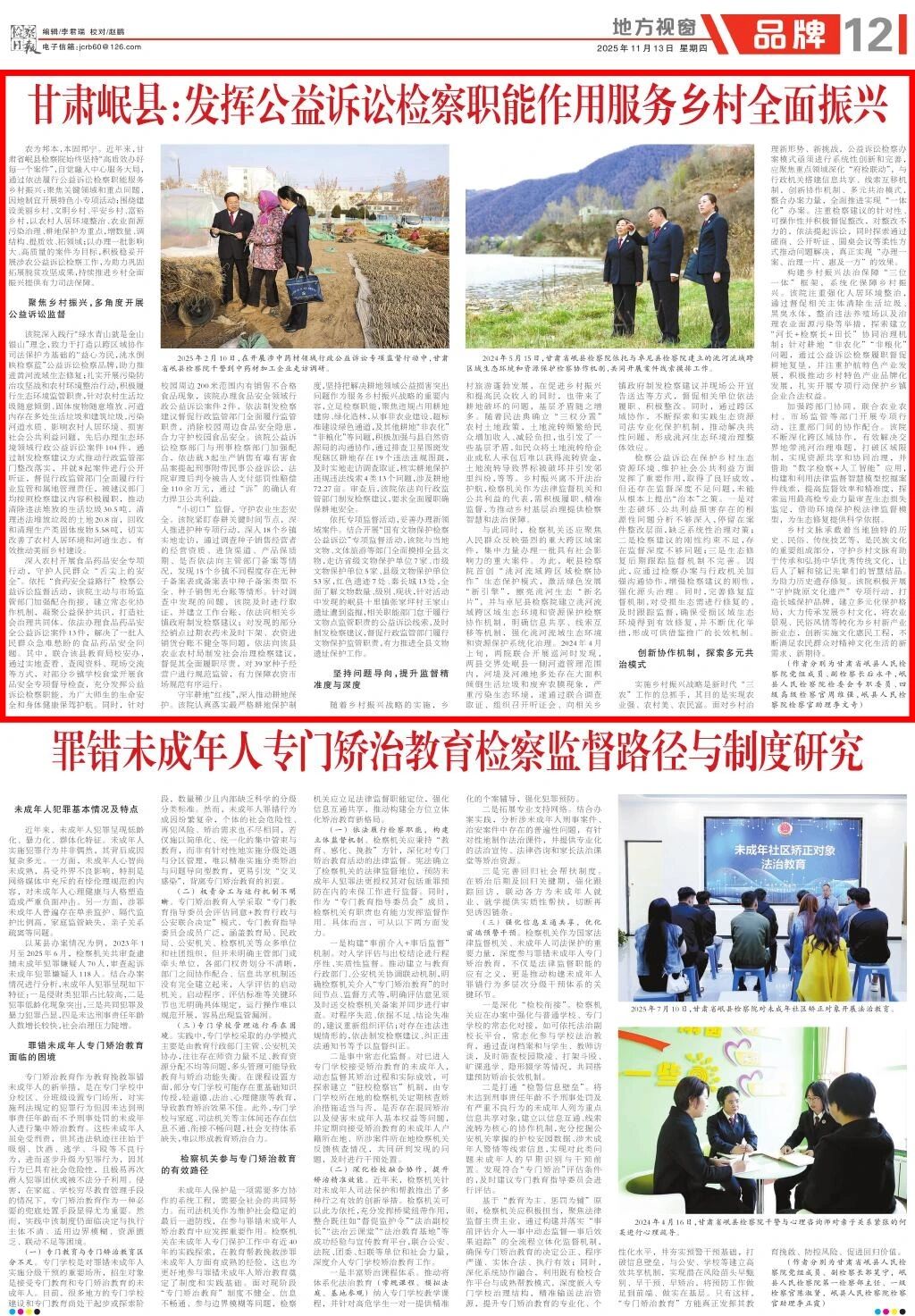 地方视窗刊发《甘肃岷县:发挥公益诉讼检察职能作用服务乡村全面振兴》。