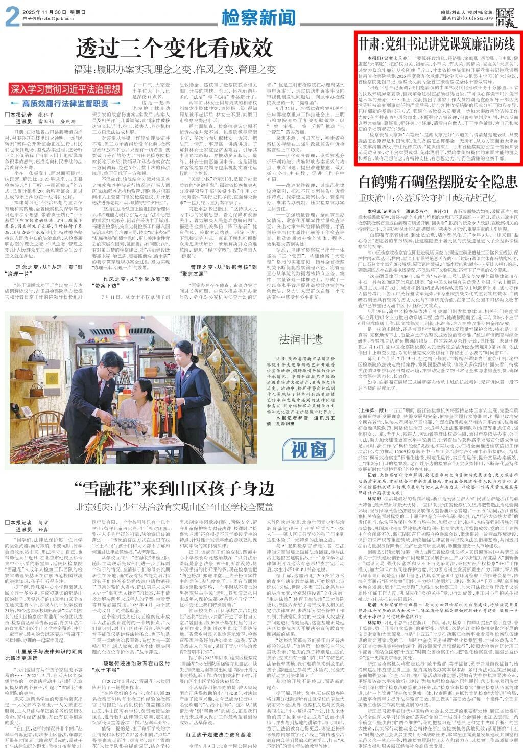 刊发《甘肃:党组书记讲党课筑廉洁防线》。
