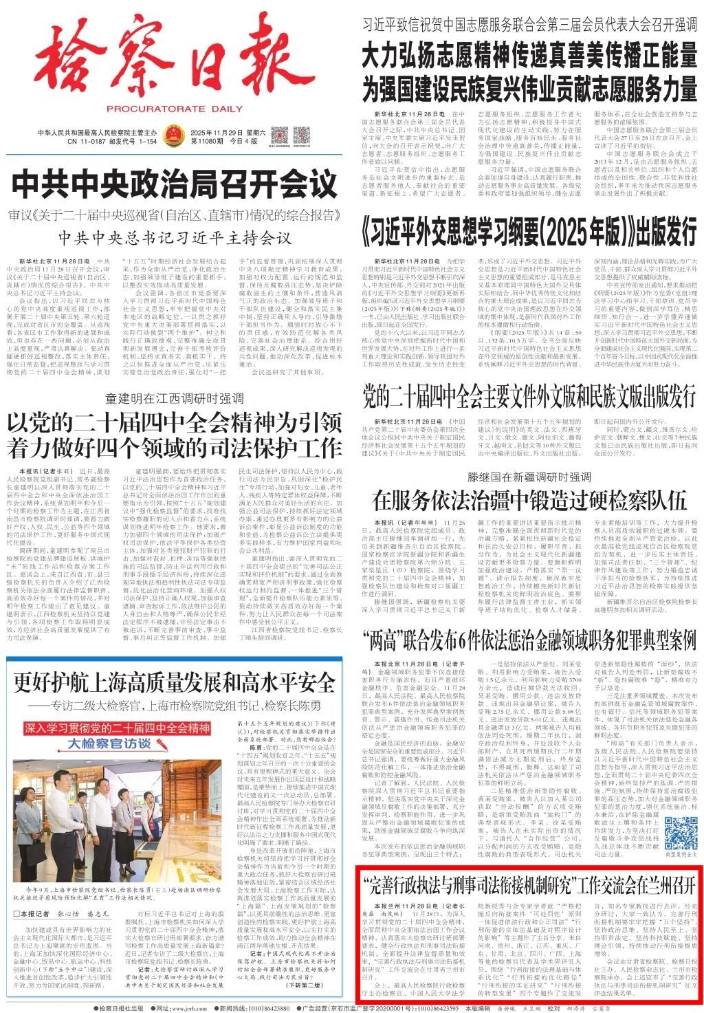 头版刊发《“完善行政执法与刑事司法衔接机制研究”工作交流会在兰州召开》。