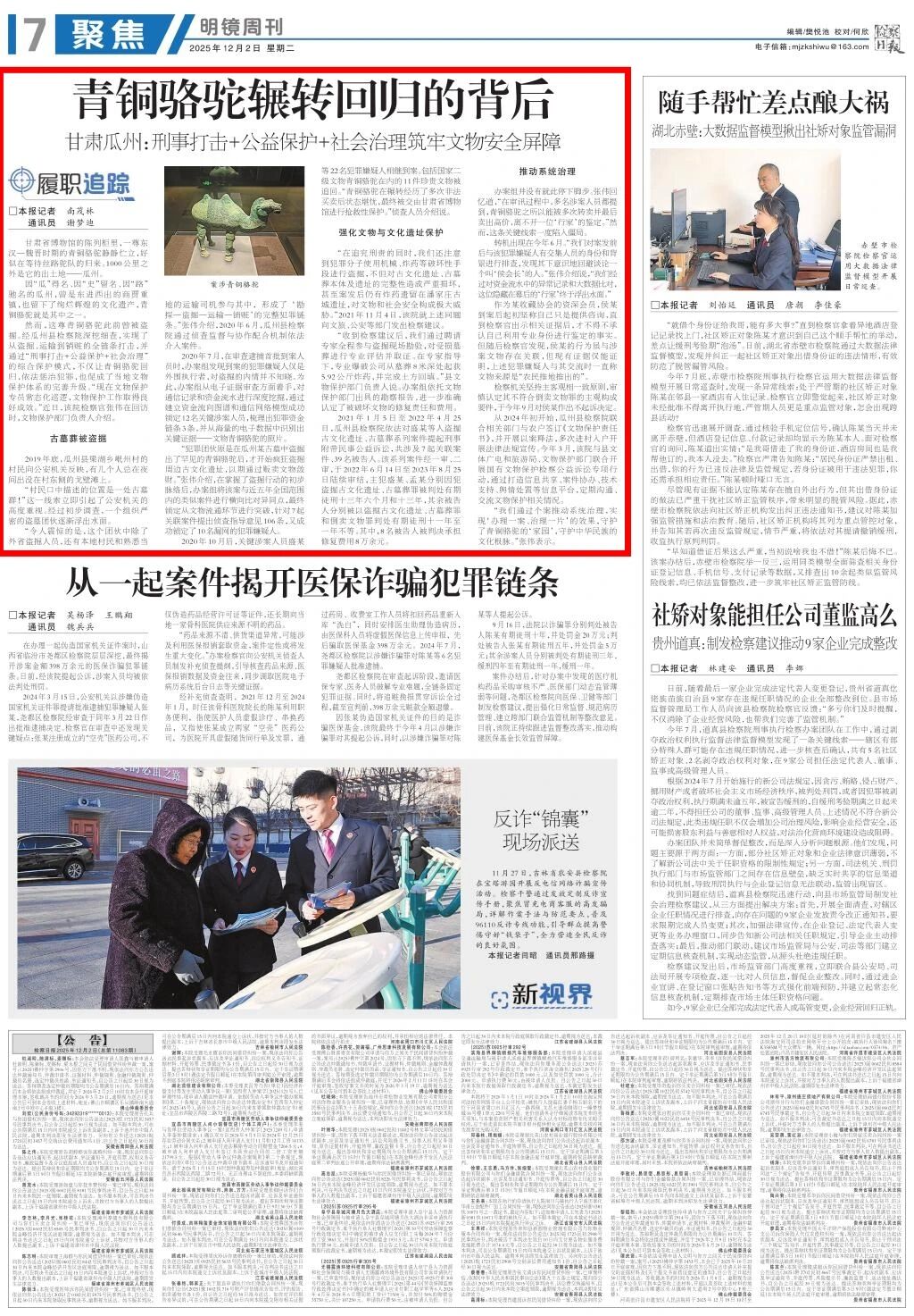 明镜周刊刊发《青铜骆驼辗转回归的背后 甘肃瓜州:刑事打击+公益保护+社会治理筑牢文物安全屏障》。