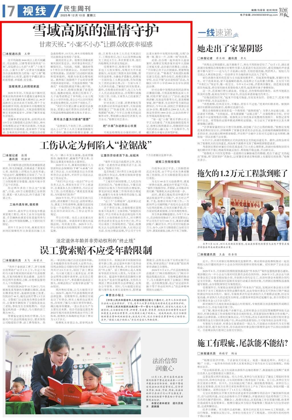 民生周刊刊发《雪域高原的温情守护 甘肃天祝:“小案不小办”让群众收获幸福感》。