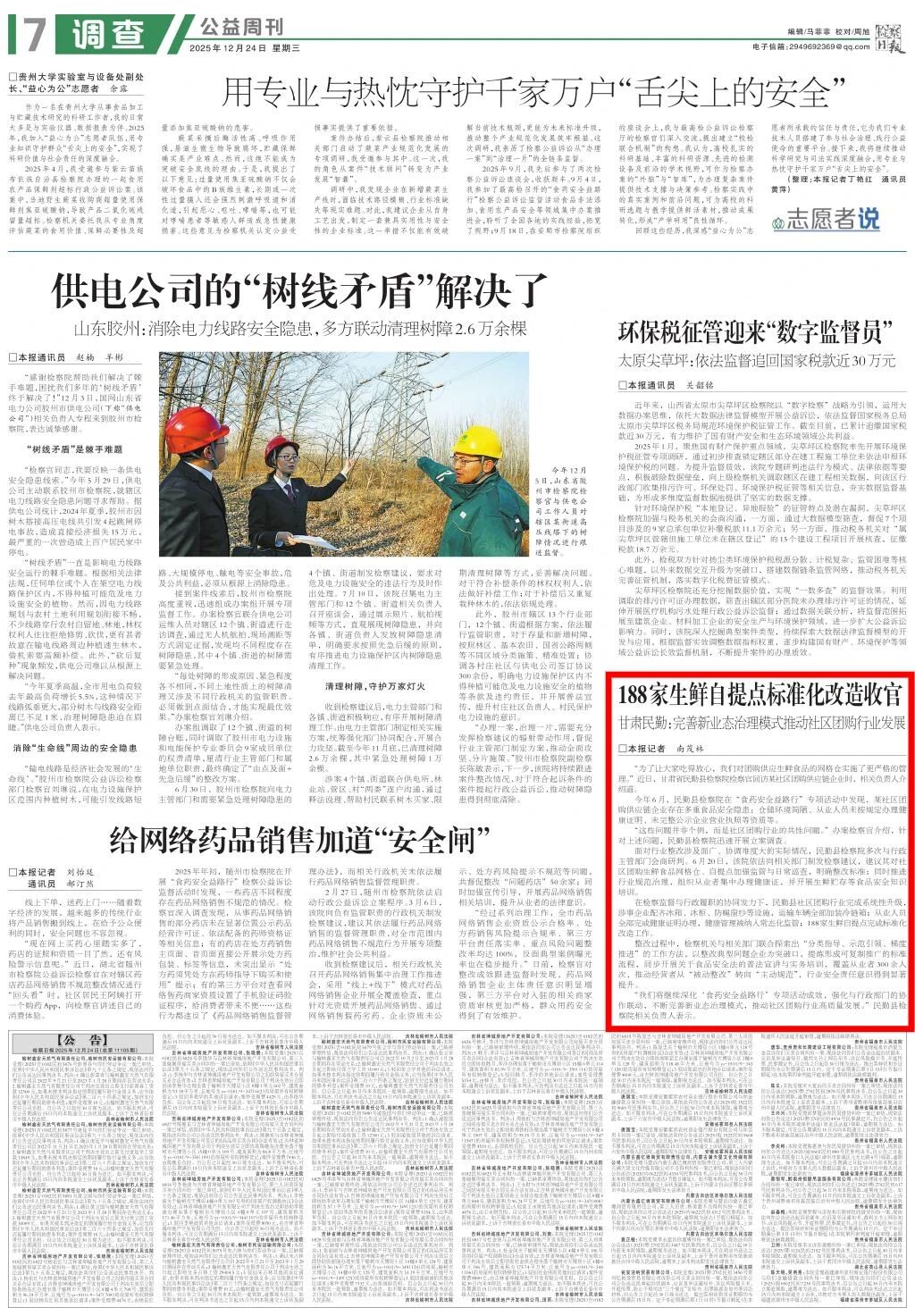 公益周刊刊发《188家生鲜自提点标准化改造收官 甘肃民勤:完善新业态治理模式推动社区团购行业发展》。