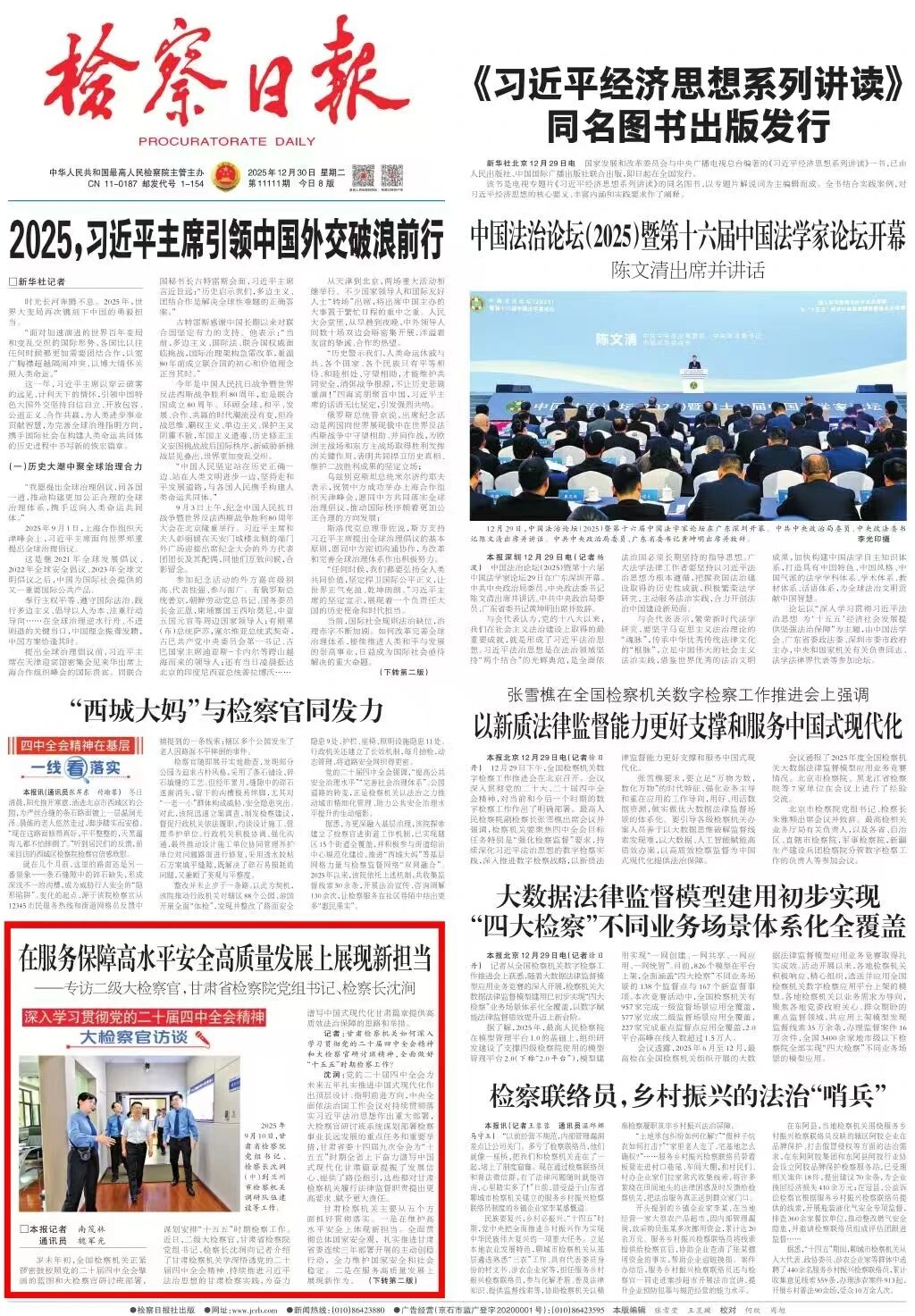 头版刊发《在服务保障高水平安全高质量发展上展现新担当》。