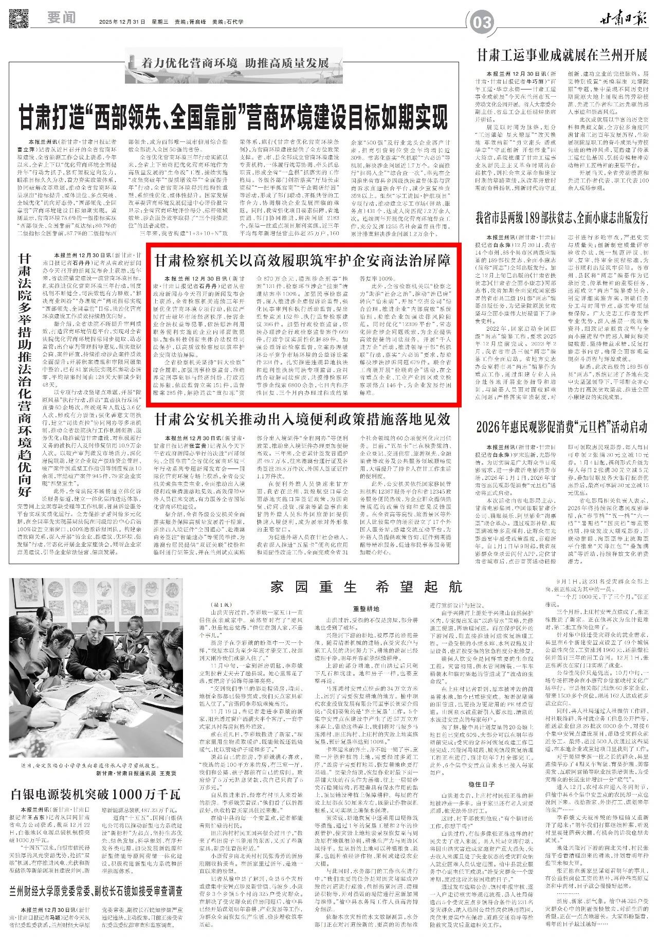 2025年12月31日,甘肃日报刊发《takse69