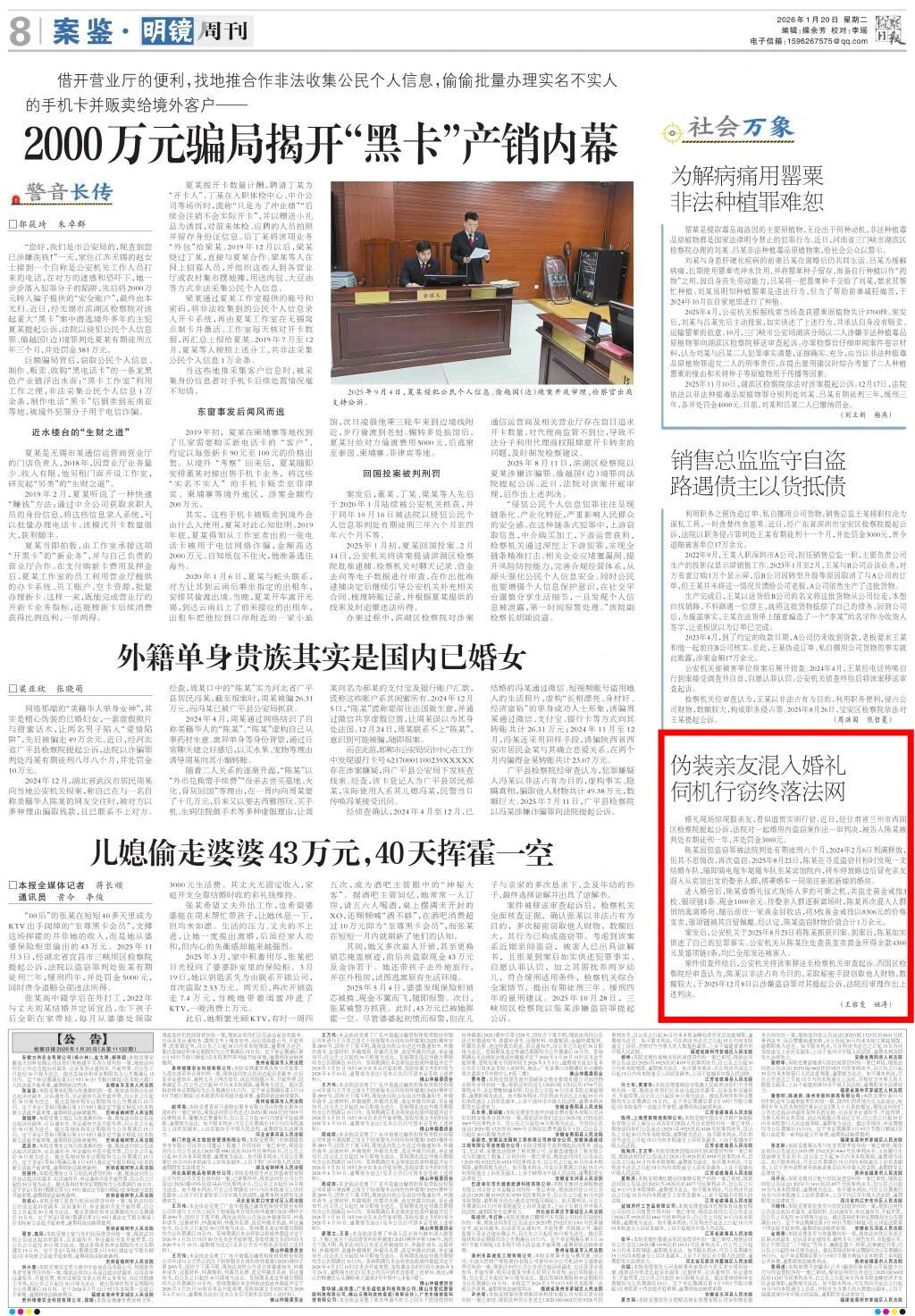 明镜周刊刊发《伪装亲友混入婚礼 伺机行窃终落法网》。