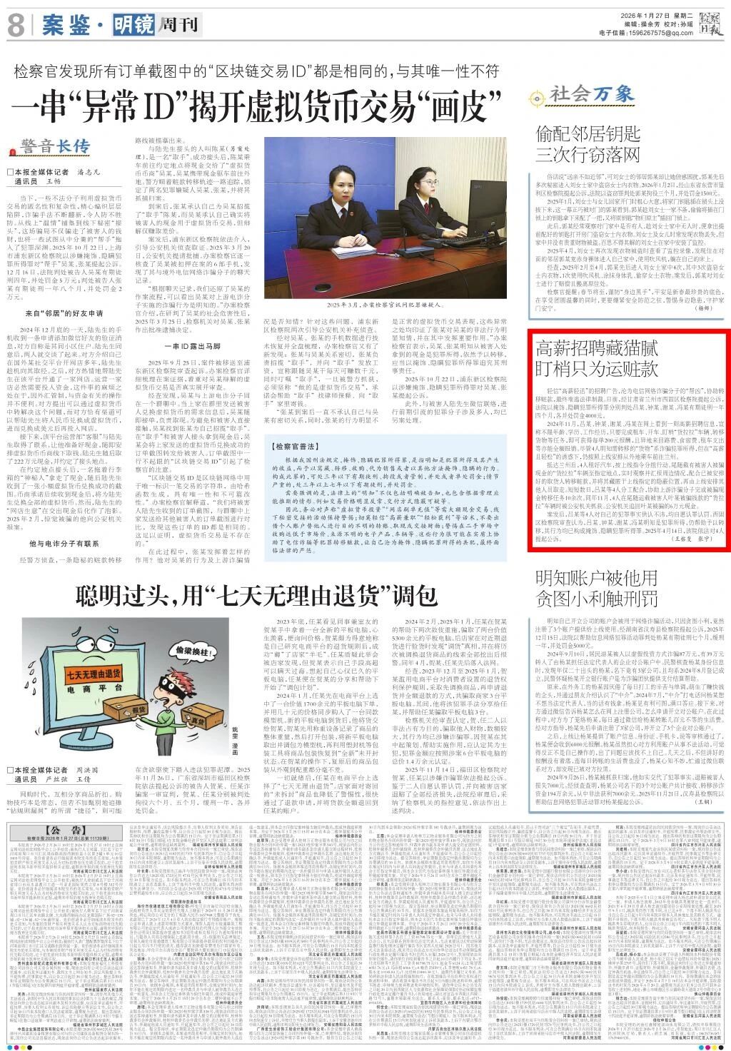 明镜周刊刊发《高薪招聘藏猫腻 盯梢只为运赃款》。