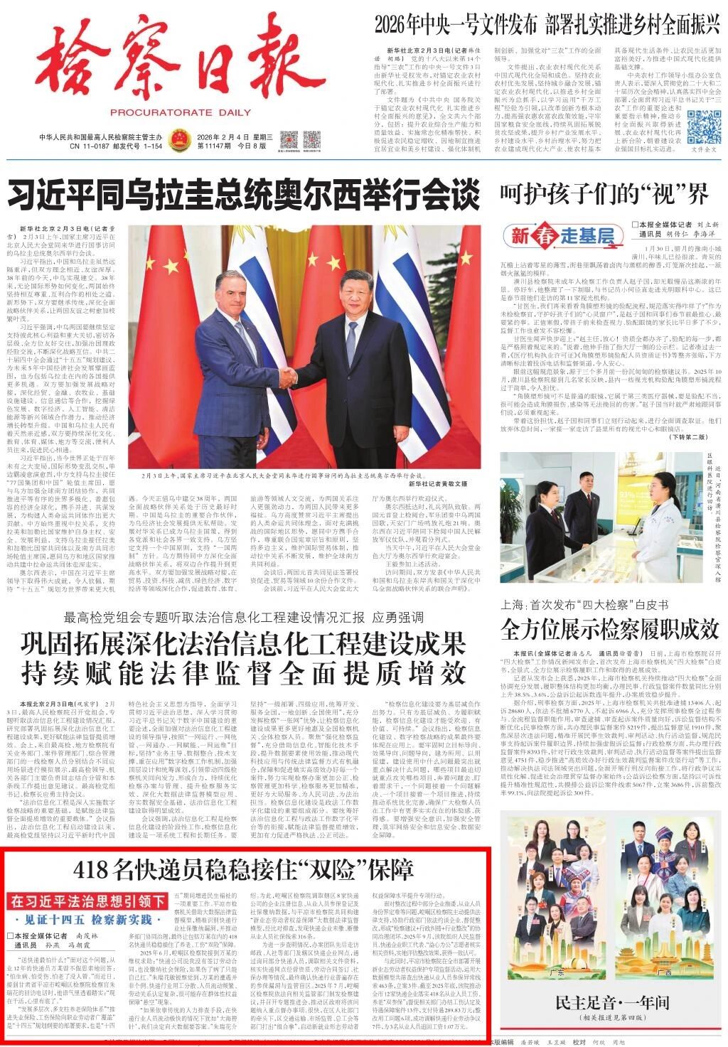 头版刊发《418名快递员稳稳接住“双险”保障》。