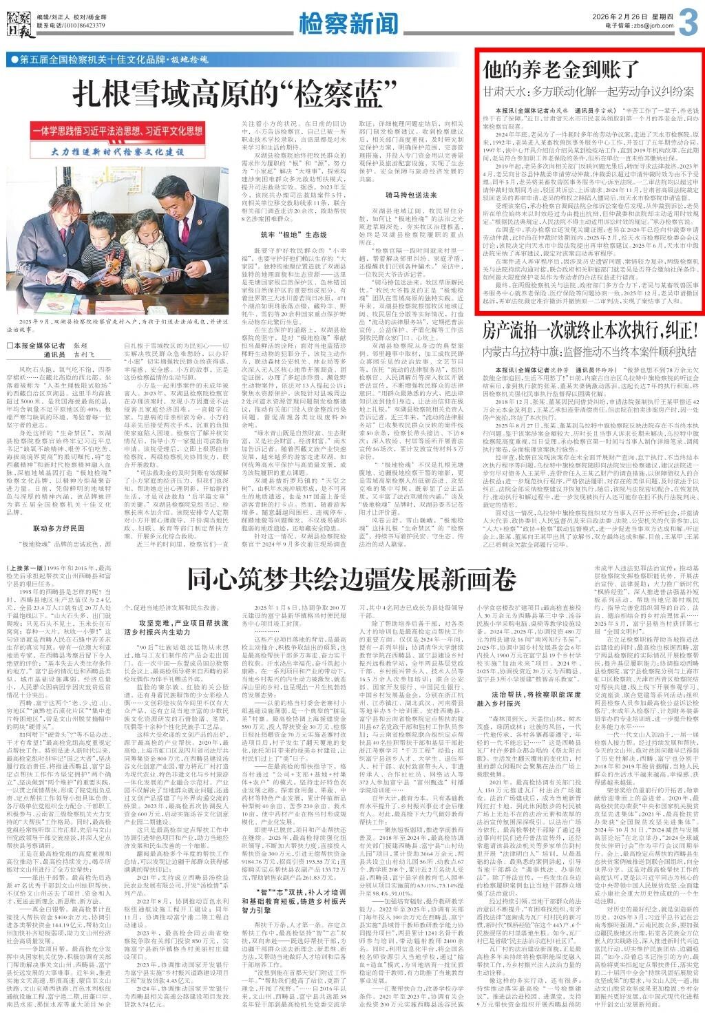 刊发《他的养老金到账了 甘肃天水:多方联动化解一起劳动争议纠纷案》。
