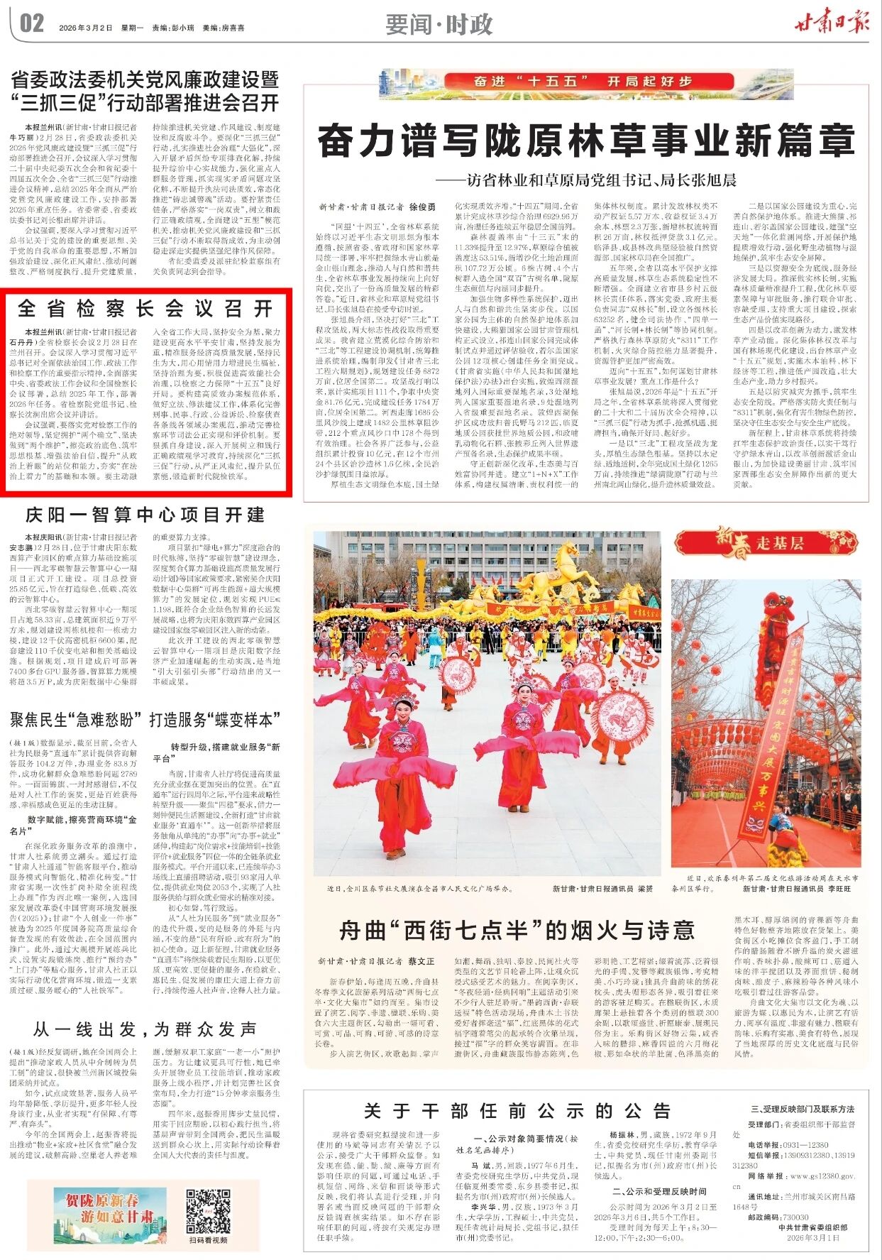 2026年3月2日,甘肃日报刊发《全省检察长会议召开》。