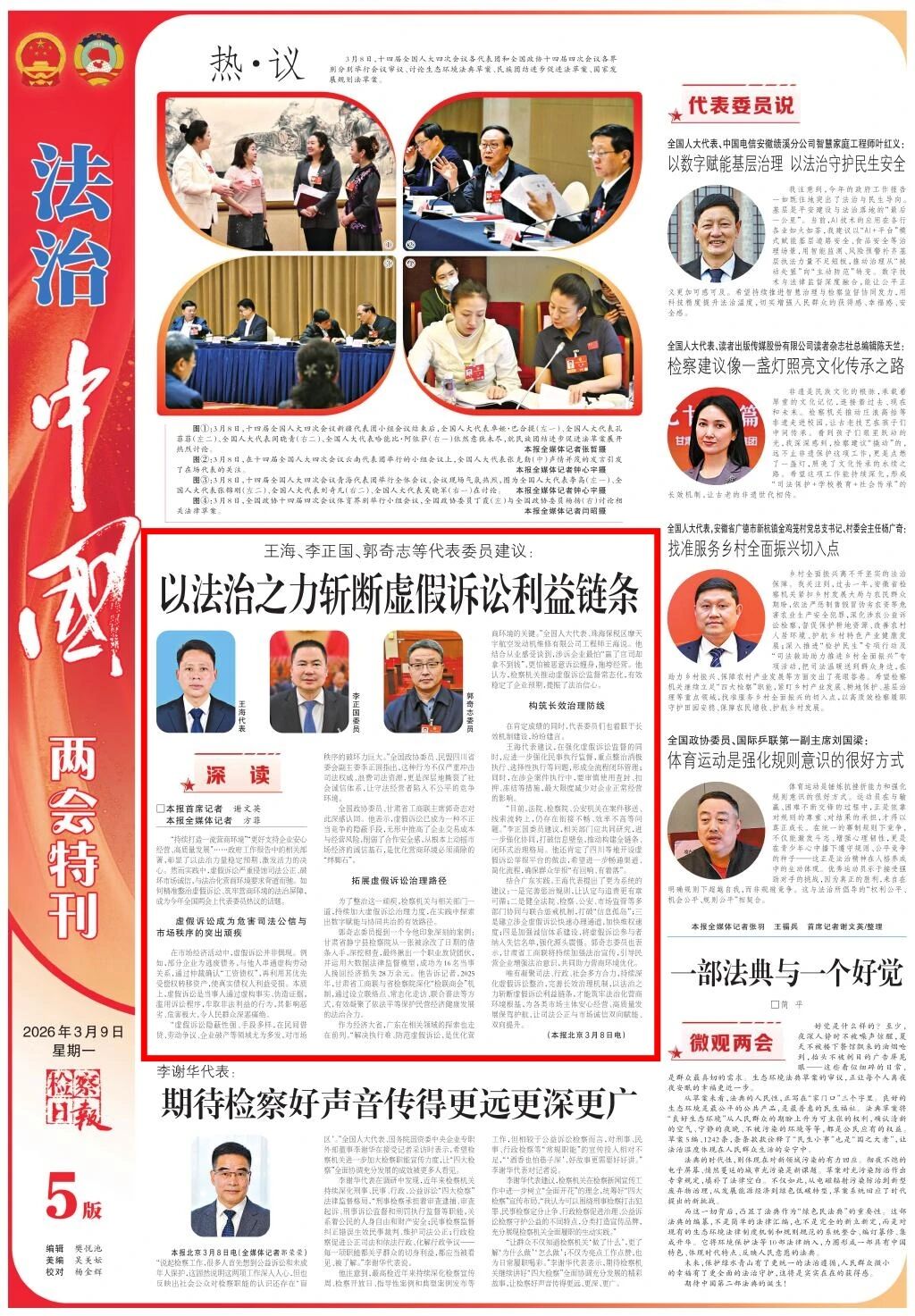 《法治中国两会特刊》专栏刊发《王海、李正国、郭奇志等代表委员建议:以法治之力斩断虚假诉讼利益链条》。