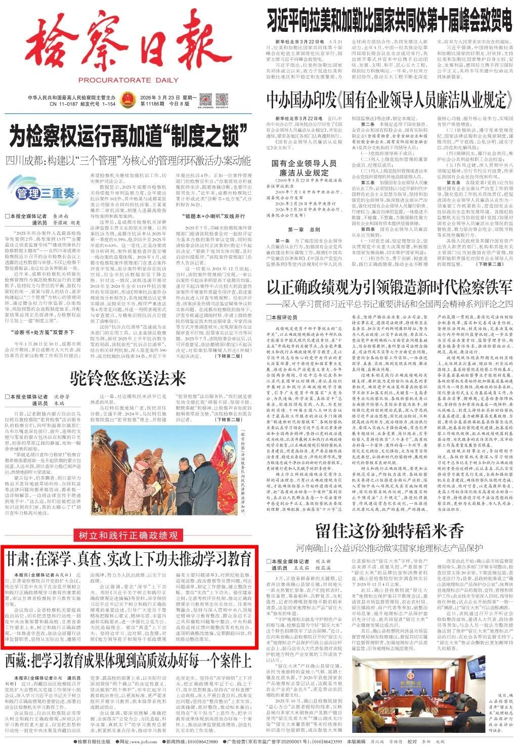 头版刊发《甘肃:在深学、真查、实改上下功夫推动学习教育》。