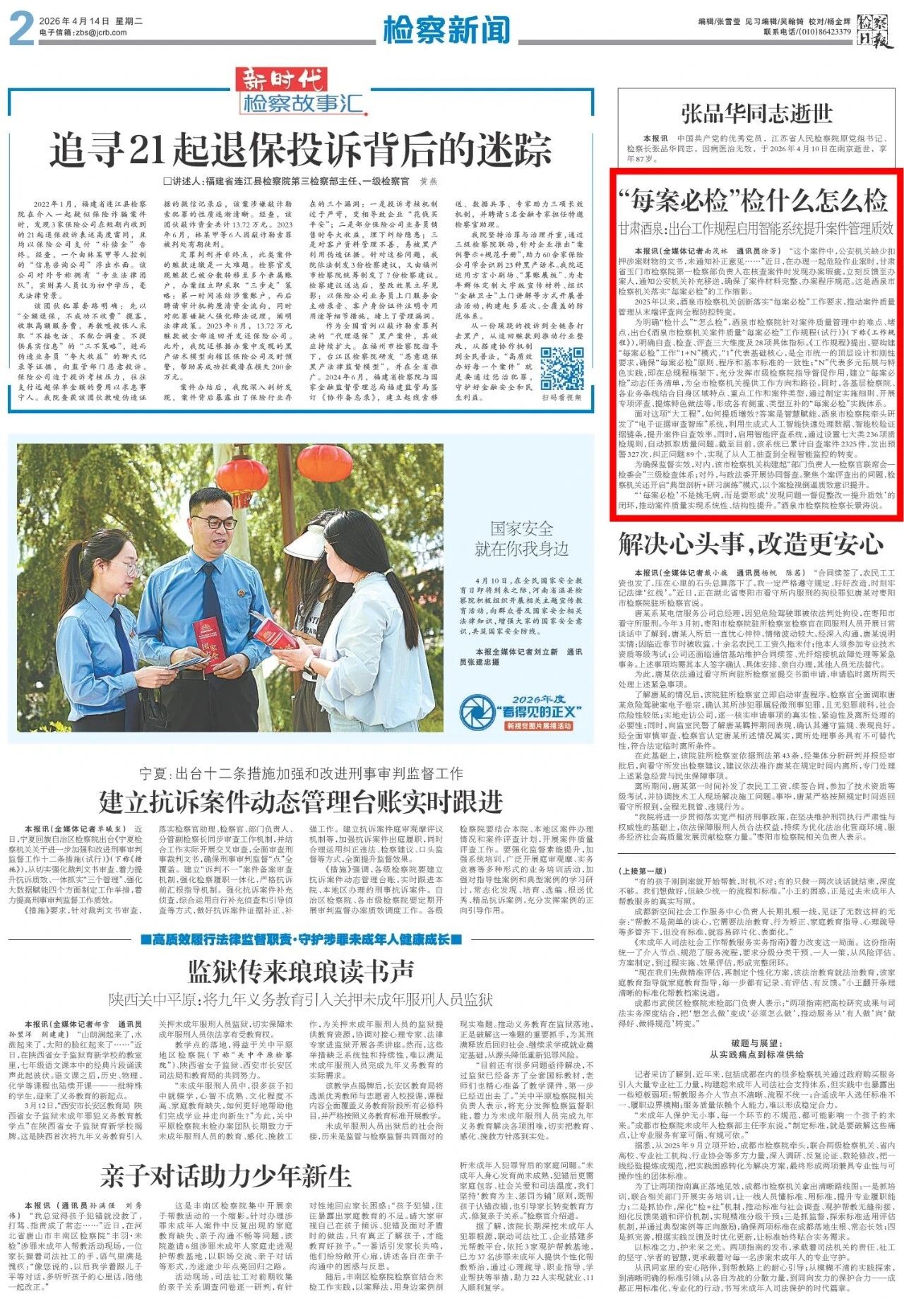 刊发《“每案必检”检什么怎么检 甘肃酒泉出台工作规程启用智能系统提升案件管理质效》。
