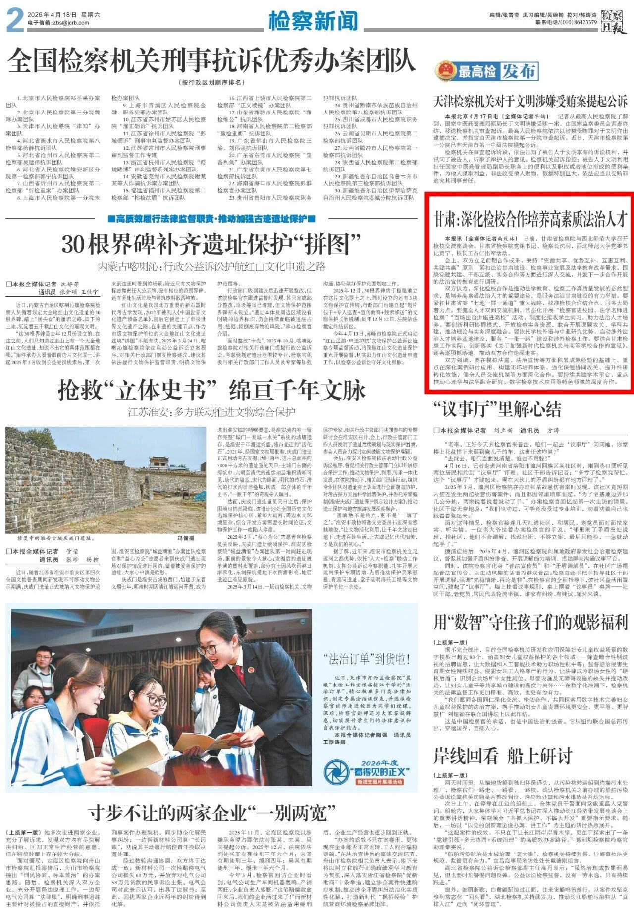 刊发《甘肃:深化检校合作培养高素质法治人才》。