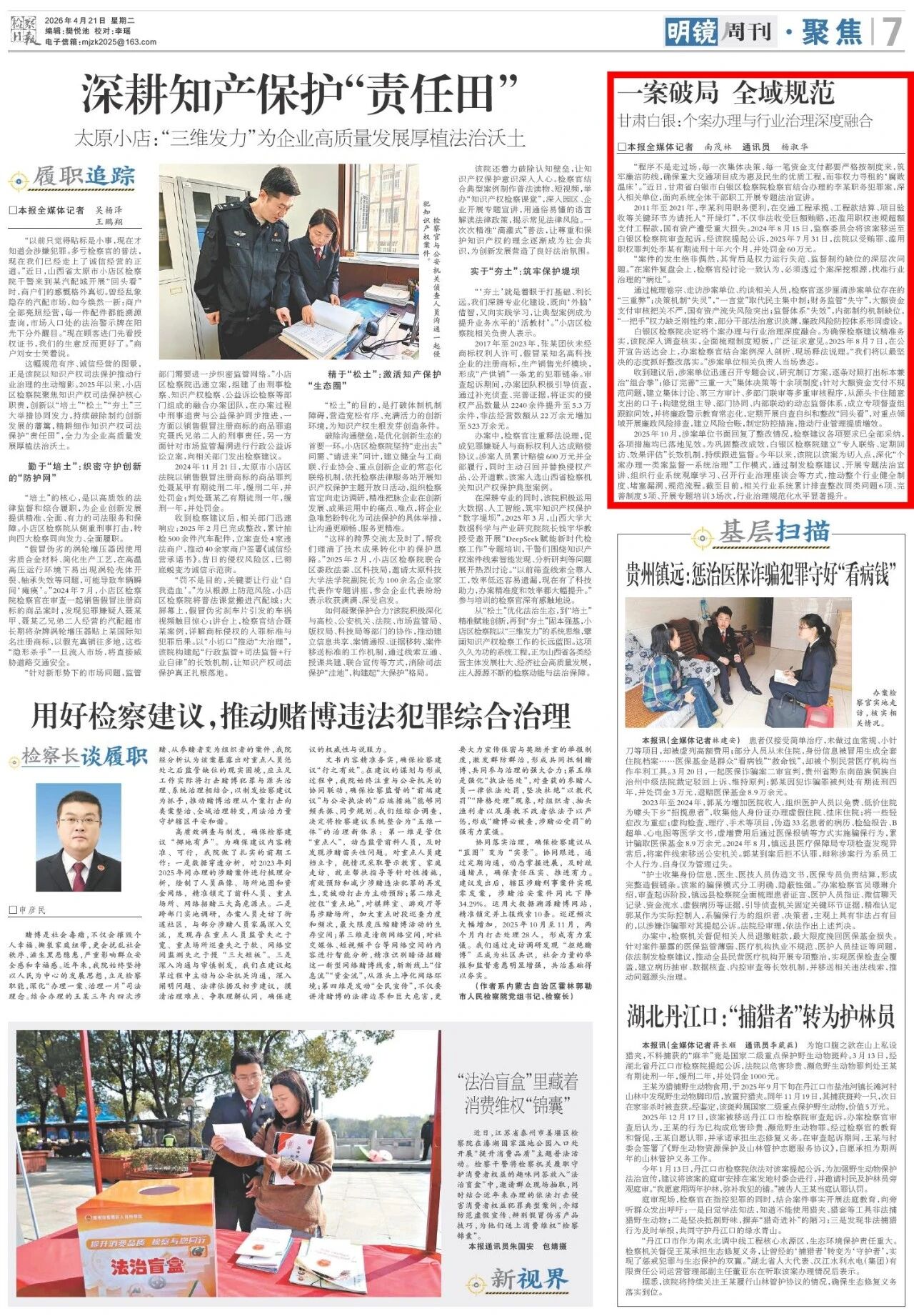 明镜周刊刊发《一案破局 全域规范 甘肃白银:个案办理与行业治理深度融合》。
