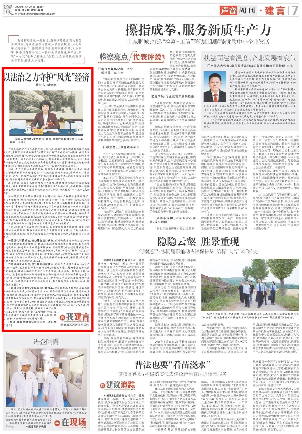 声音周刊刊发《以法治之力守护“风光”经济》。